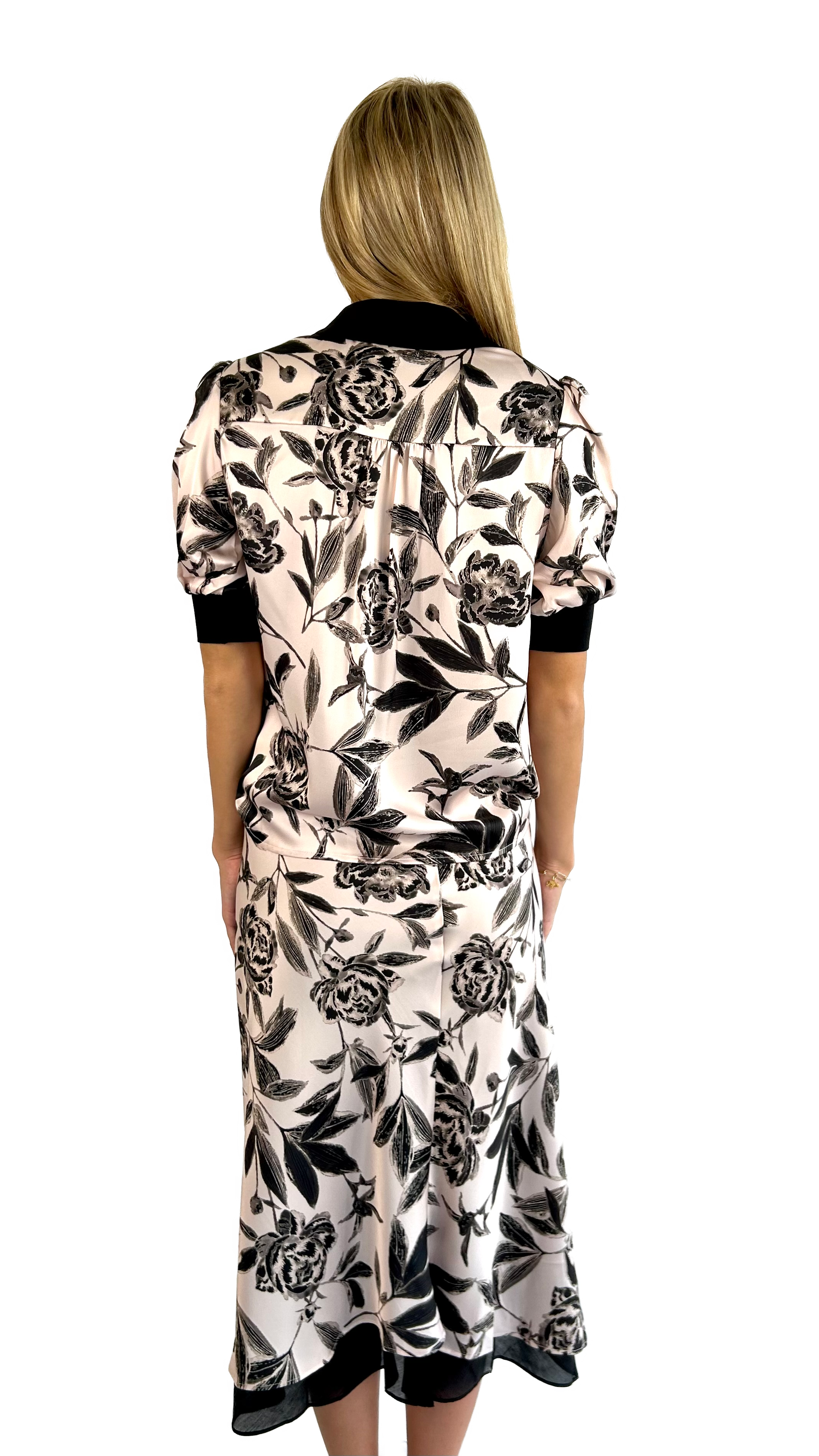 Blush and Black Floral Satin Skirt