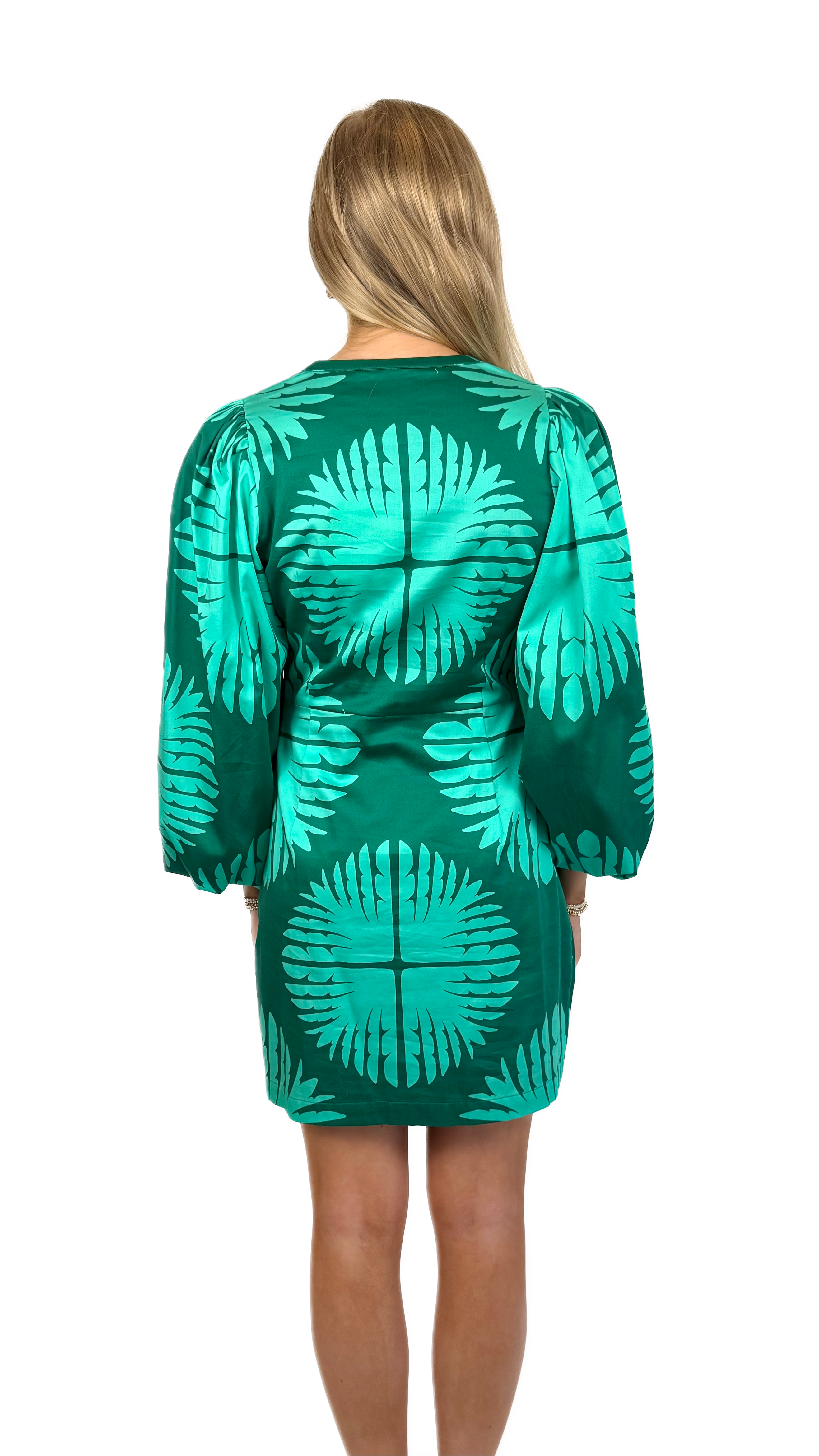 Bold green printed mini dress