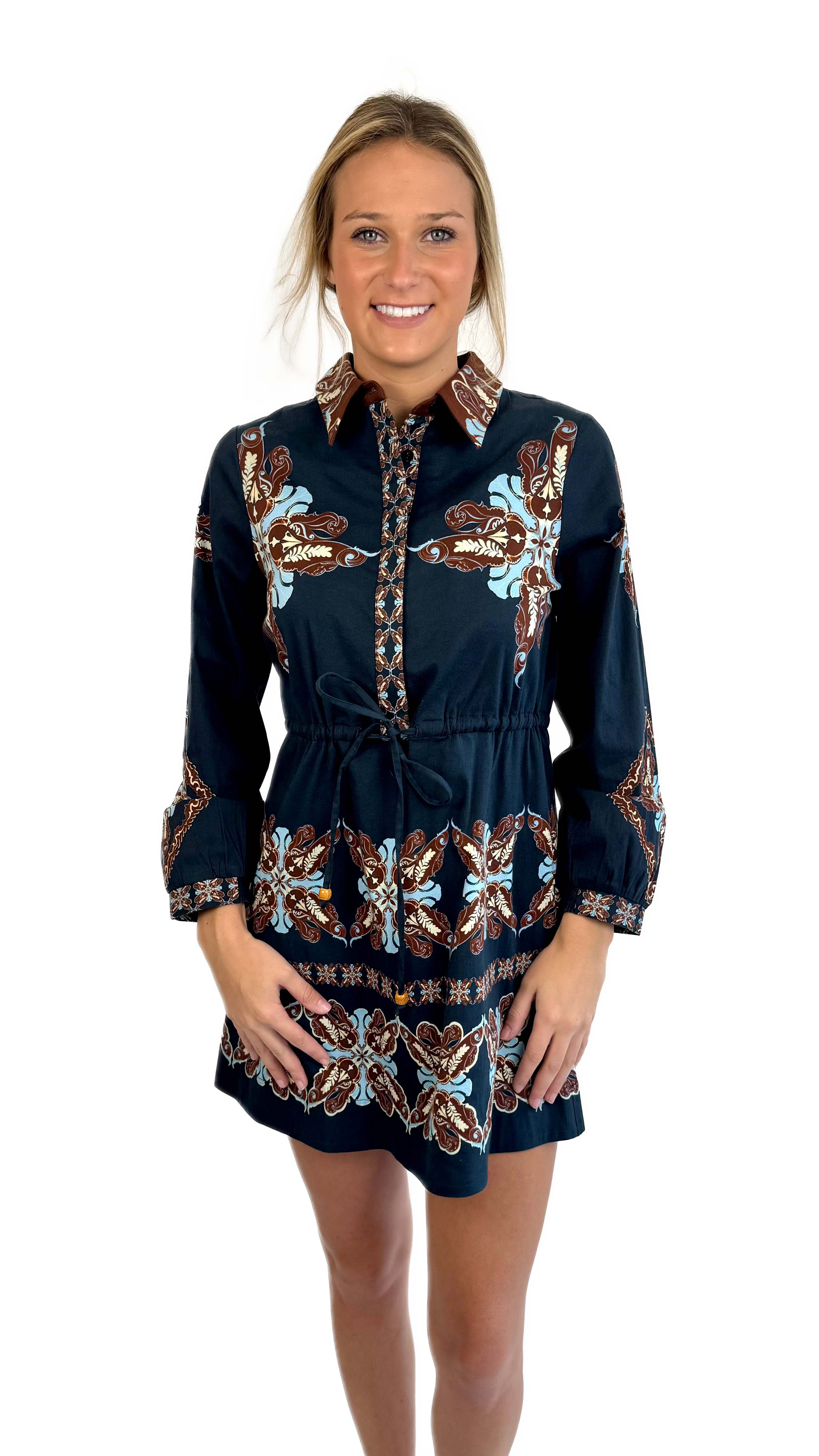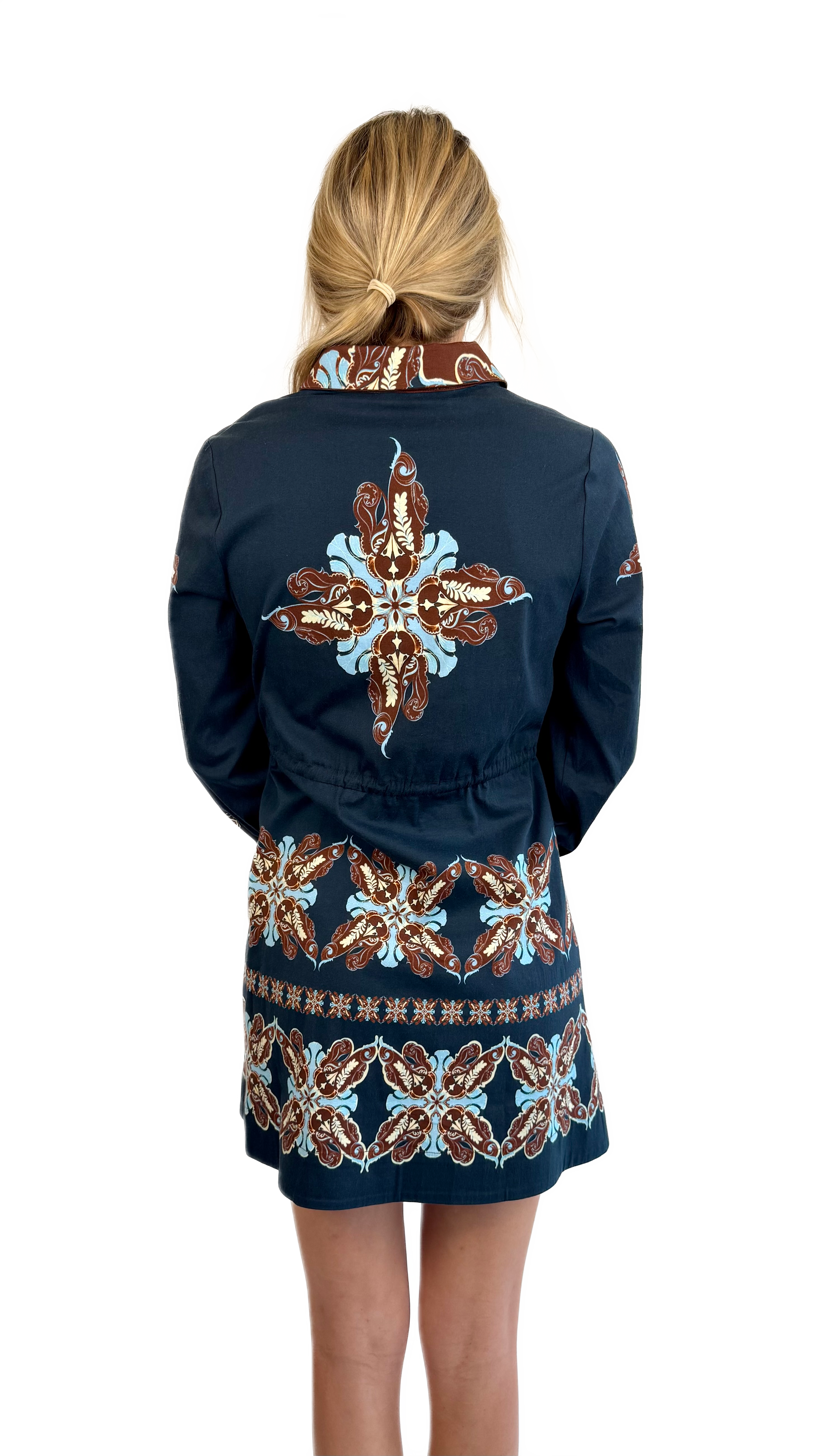 Navy paisley print mini dress