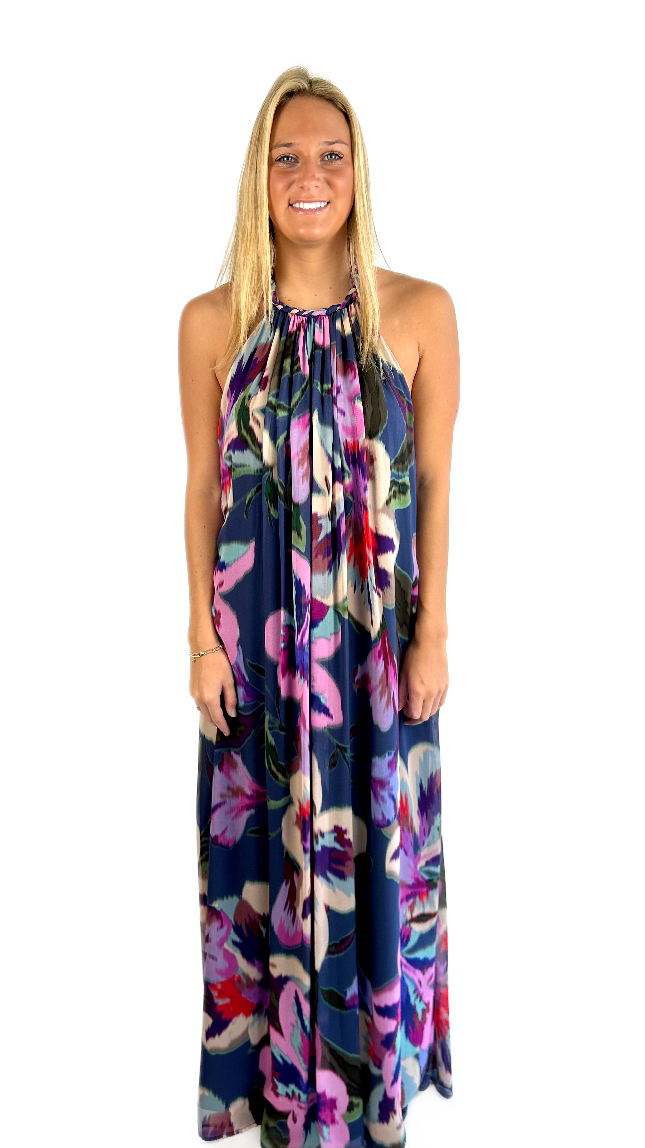Floral Chifon Halter Long Dress