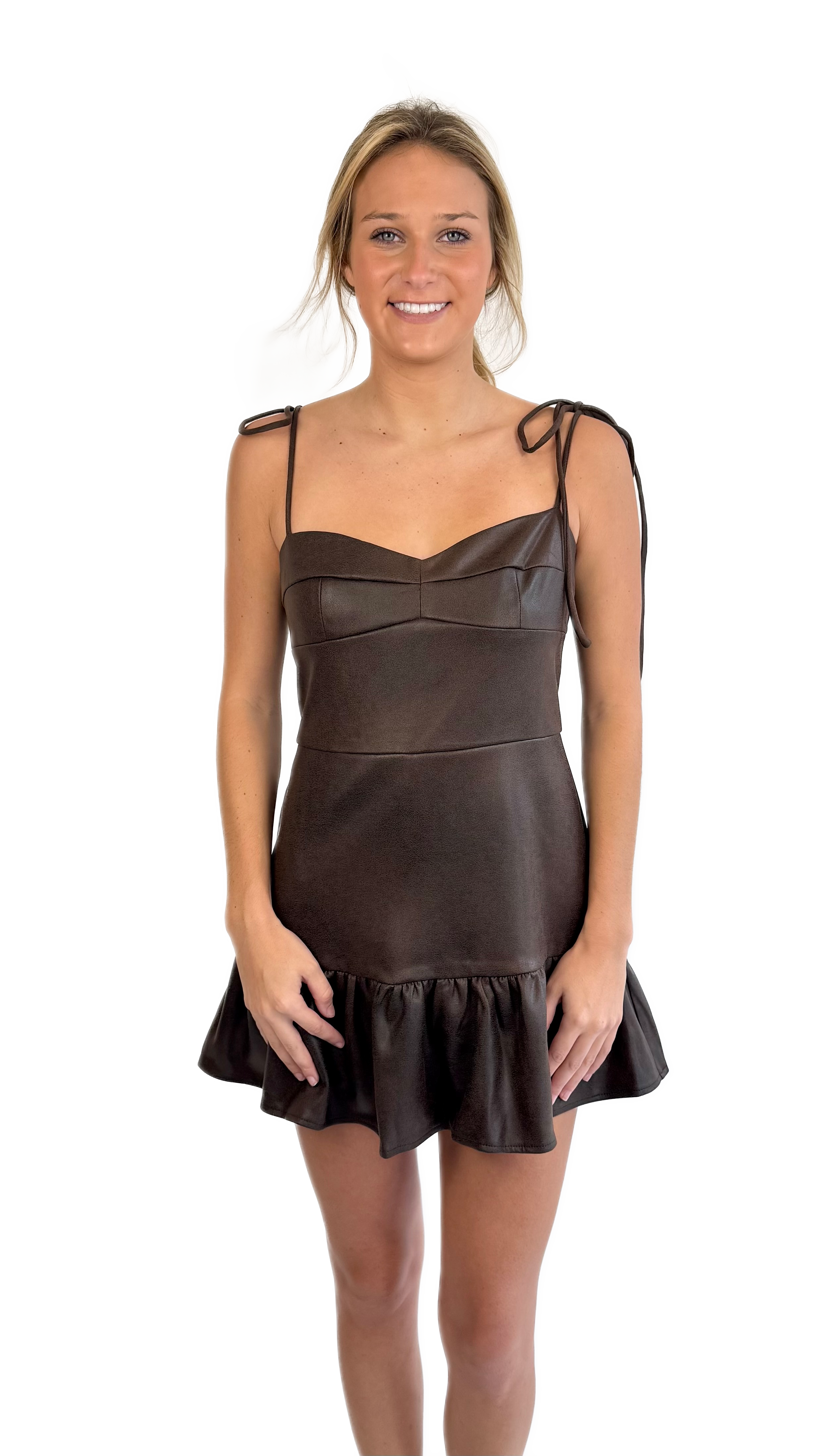 Brown faux-leather romper