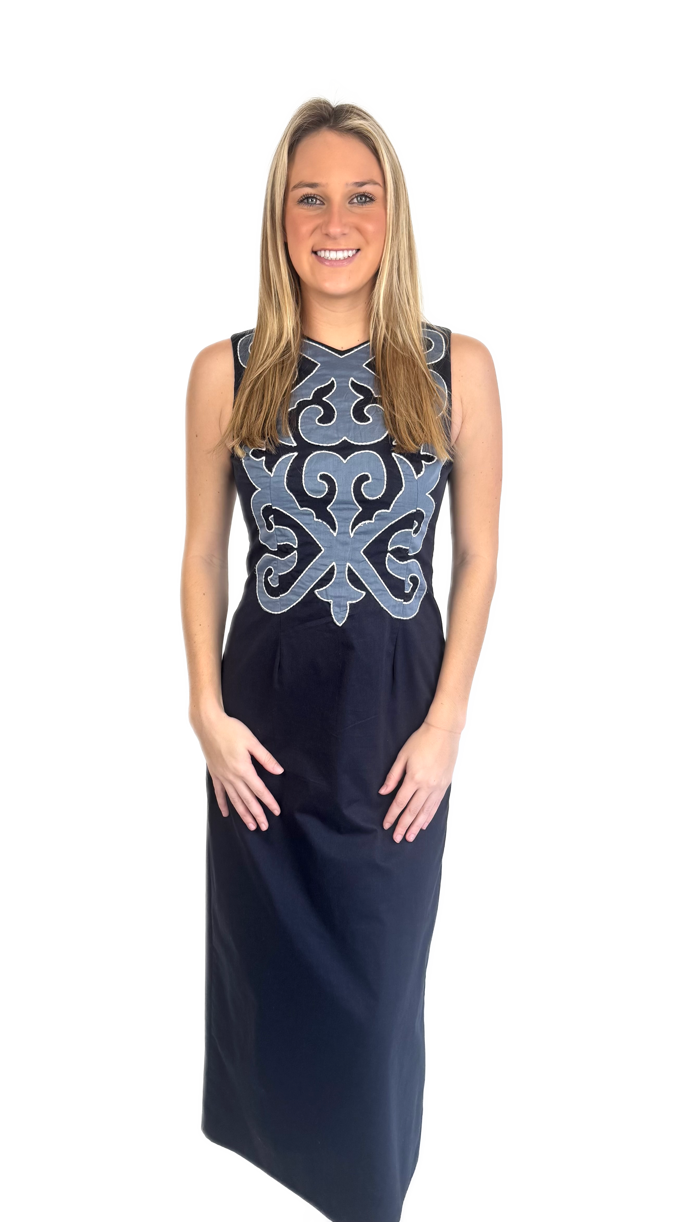 • Navy midi dress